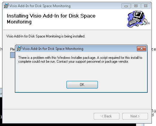 Fehlermeldung bei der Installation des Visio Add-In for Disk Space